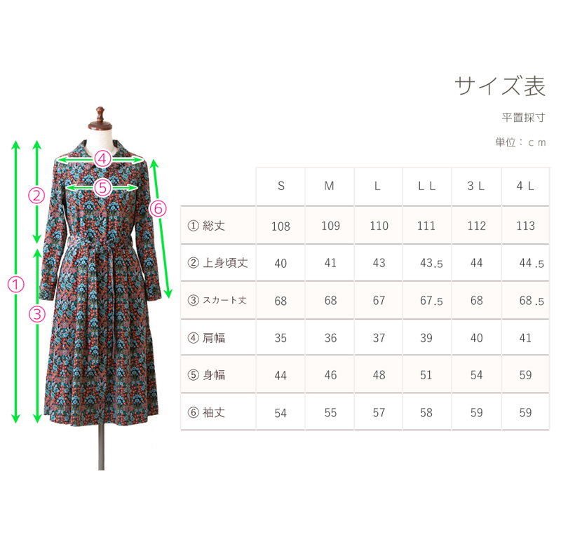 | スカート丈 | 68 | 68 | 67 | 67.5 | 68 | 68.5 |